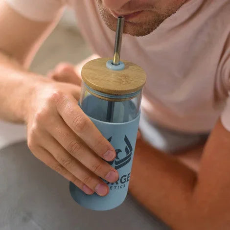 - It has a secure push-on natural bamboo lid with a stainless steel straw and a silicone seal.