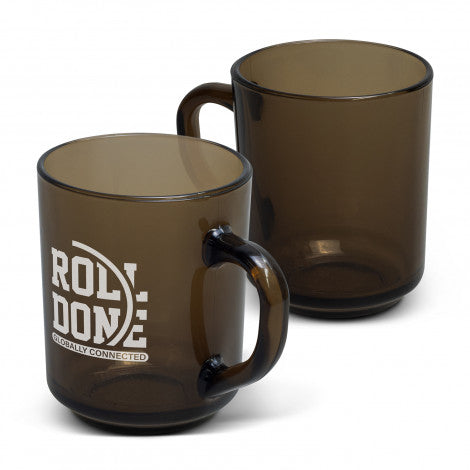 - Glass Mug made from impact-resistant opal glass with a smoky brown finish.